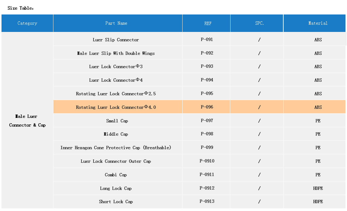 Product Name:JN Components  【Male Luer Connector & Cap】REF P-096