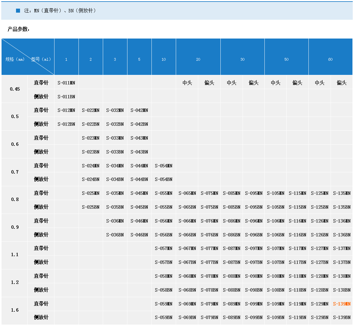 產(chǎn)品名稱(chēng):直插帶針  REF-S-139MN-60ML