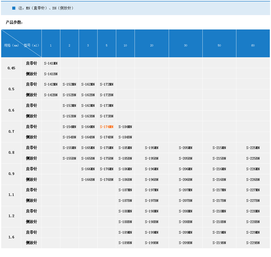 產品名稱:螺口帶針  REF-S-174MN-5ML