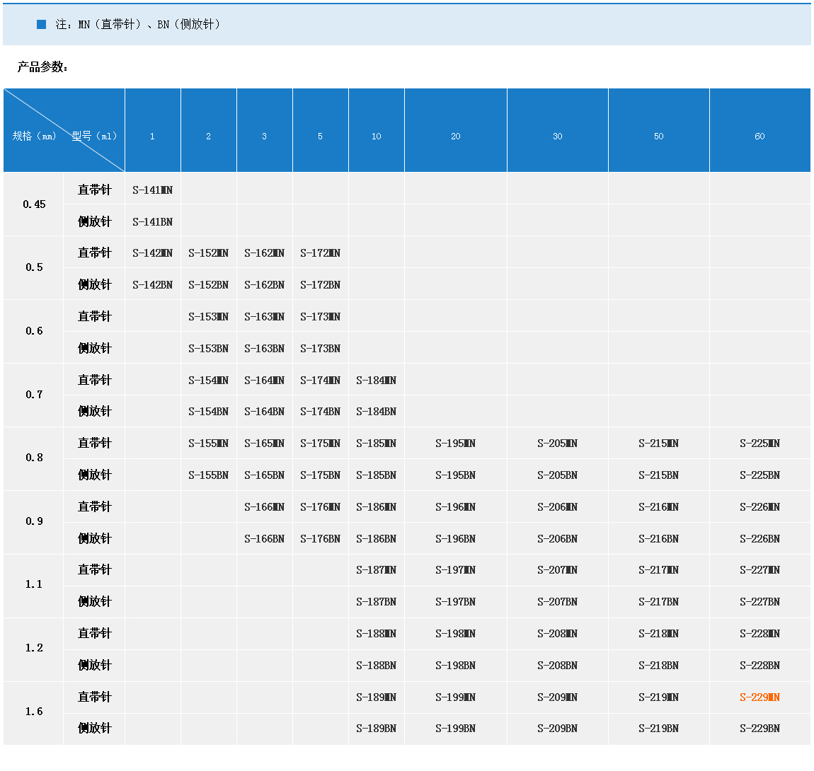 產品名稱:螺口帶針  REF-S-229MN-60ML