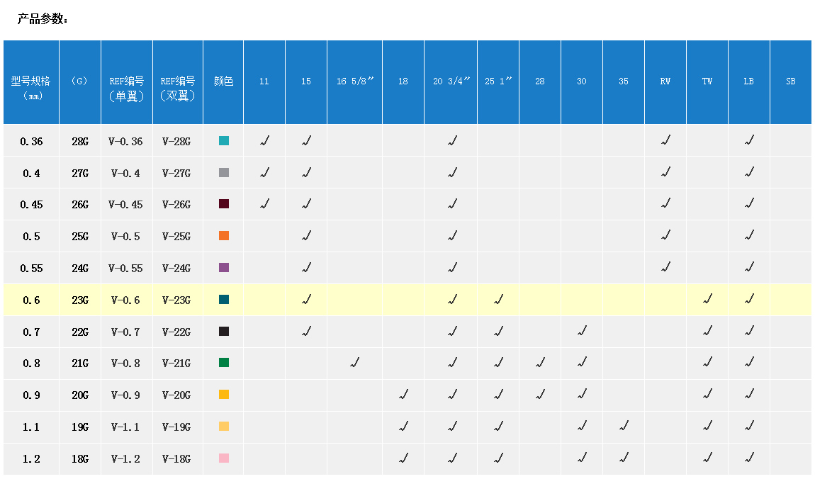 產品名稱:靜脈針  REF V-23G 0.6MM螺口