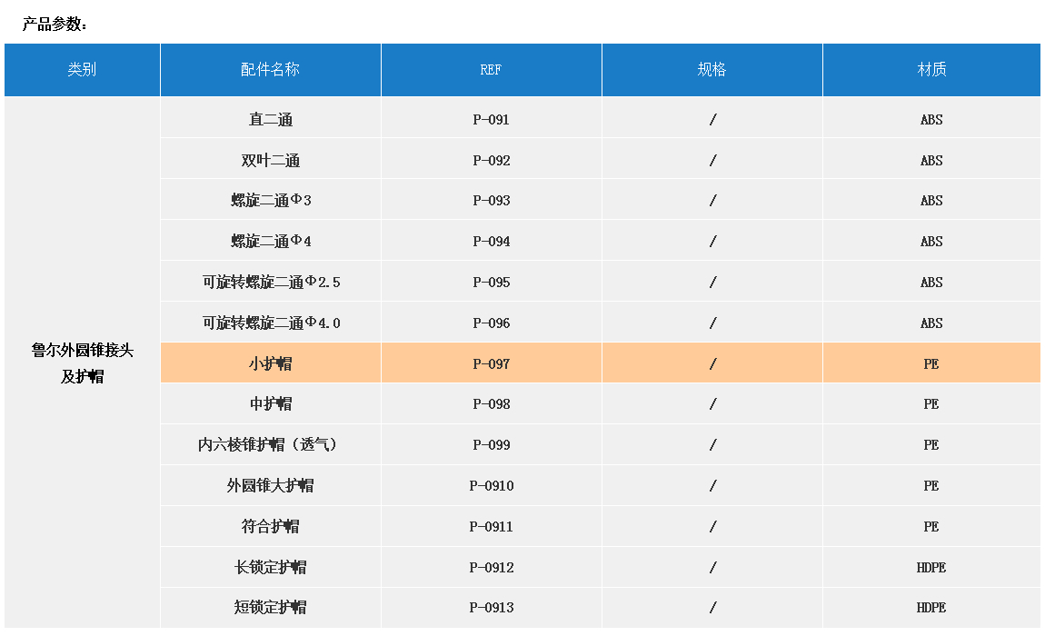 產(chǎn)品名稱(chēng):配件  【魯爾外圓錐接頭及護(hù)帽】REF P-097