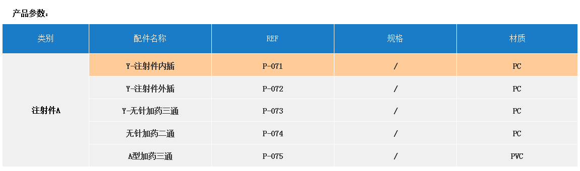產(chǎn)品名稱:配件  【注射件A】REF P-071