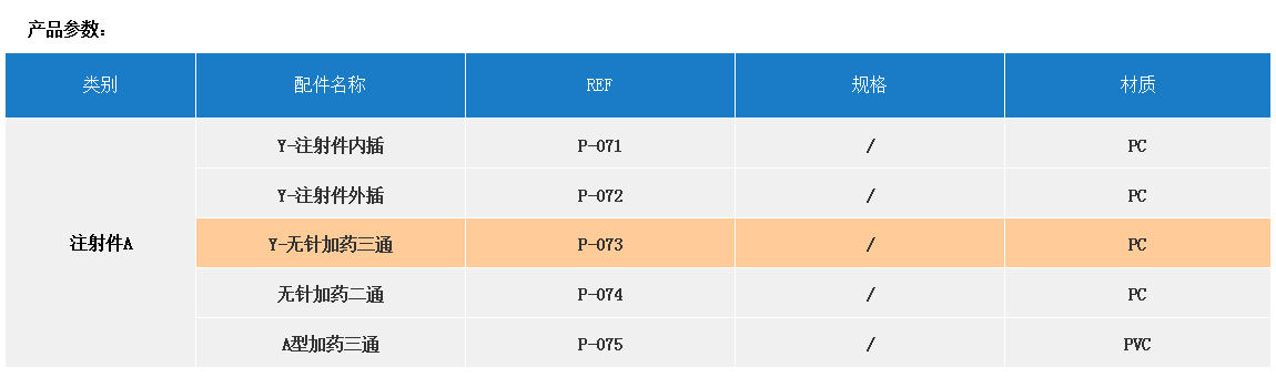 產(chǎn)品名稱:配件  【注射件A】REF P-073